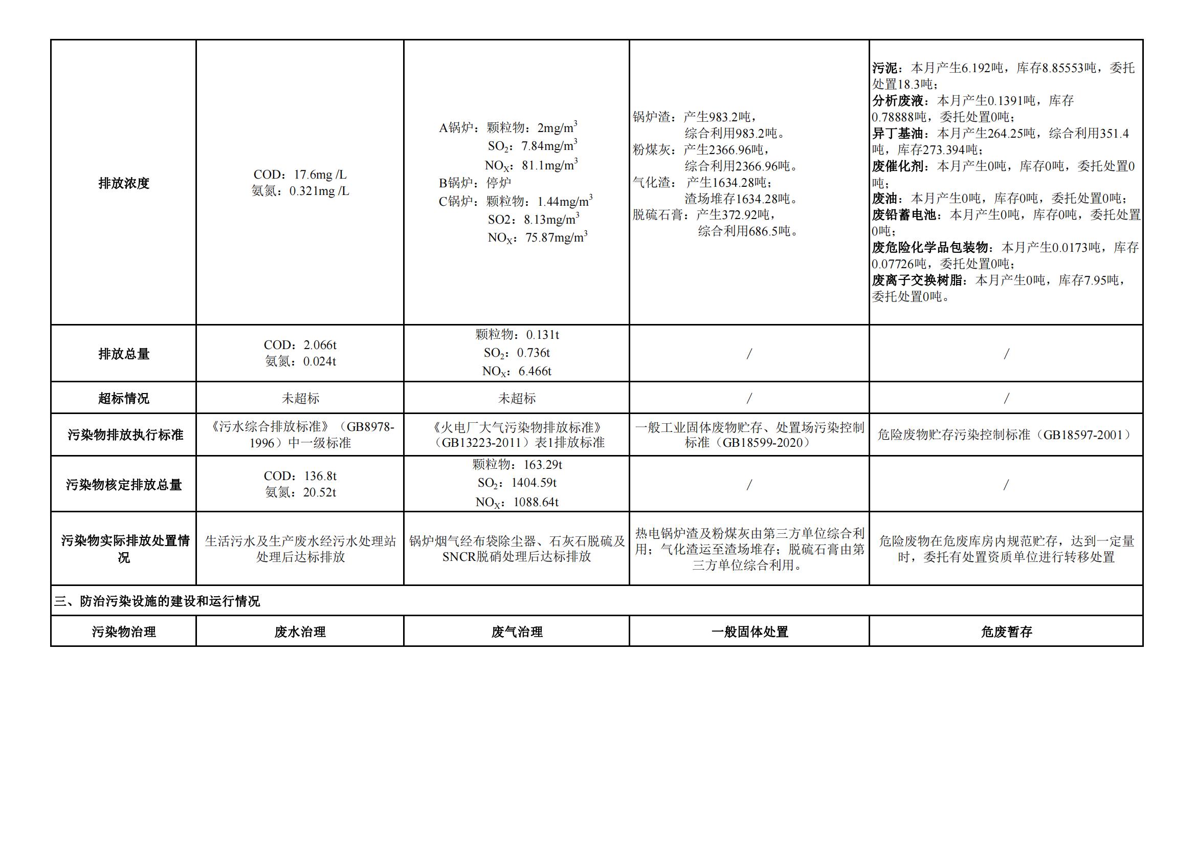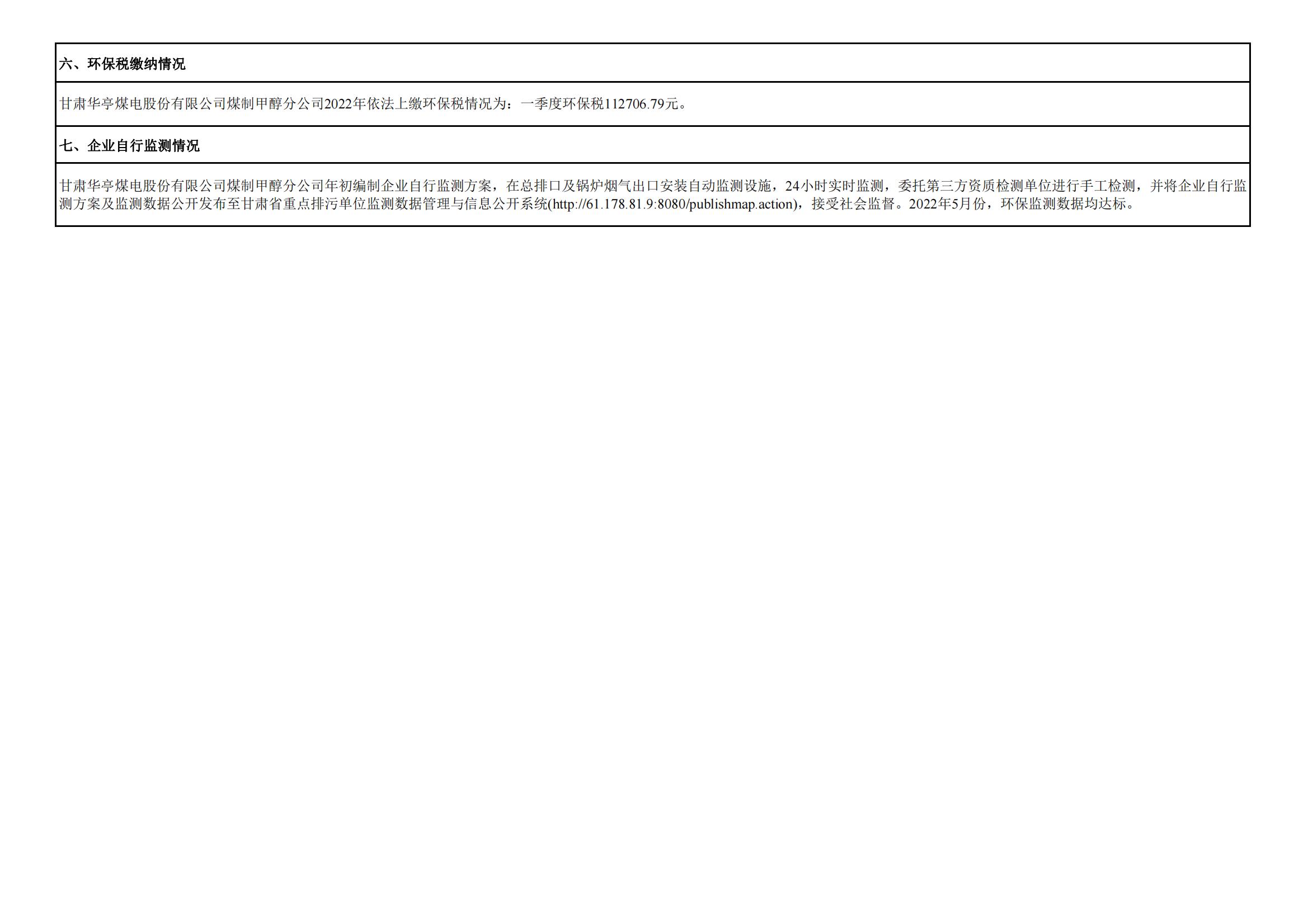 煤制甲醇分公司環(huán)境信息公開內(nèi)容(2022年5月)
